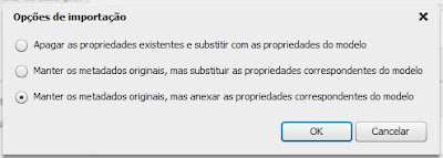 Ao importar sua metadata, aparecerá uma janela com as seguintes opções: